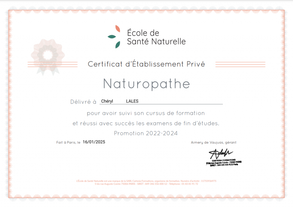 Adhérente de l’APHN : Association pour la promotion de l’hygiène vitale et de la naturopathie