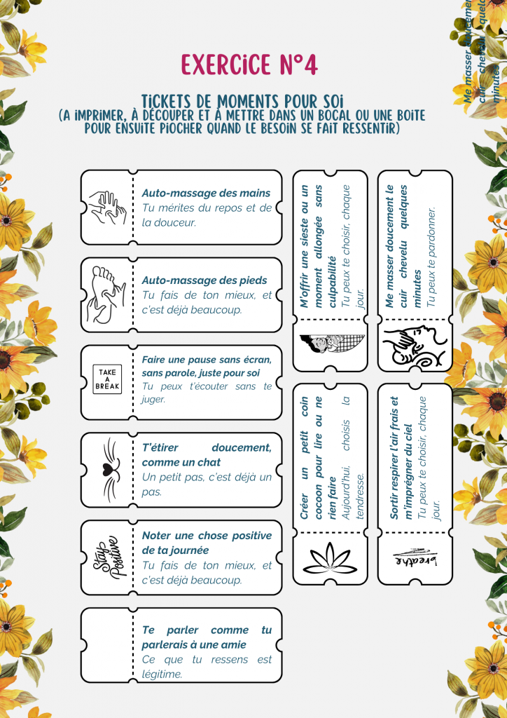 Ce cahier de vacances est pour toi si tu te sens dépassée, que tu n’oses pas prendre du temps pour toi, que tu ne sais pas comment prendre ce temps pour toi et que tu souhaites ralentir.